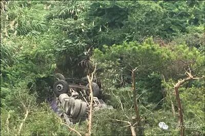 昨日,在洞头区大门镇发生了一起令人心悸的交通事故,一辆渣土车冲下了三十米高的悬崖。所幸驾驶员在最后关头跳车逃生。